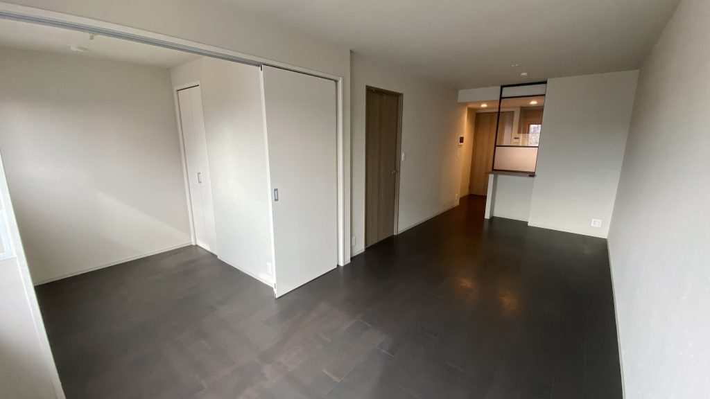 こちらのお部屋は、リビングと隣接している居室が引き戸で隔てられており、引き戸をフルオープンすることで、リビングと居室の空間を繋げることができます。