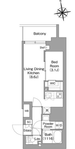 洋室にはウォークインクローゼットを備えており、衣類はもちろん、バッグや季節家電、スーツケースなどもまとめて収納可能。居住空間に物が出にくく、室内をすっきりと保つことができます。