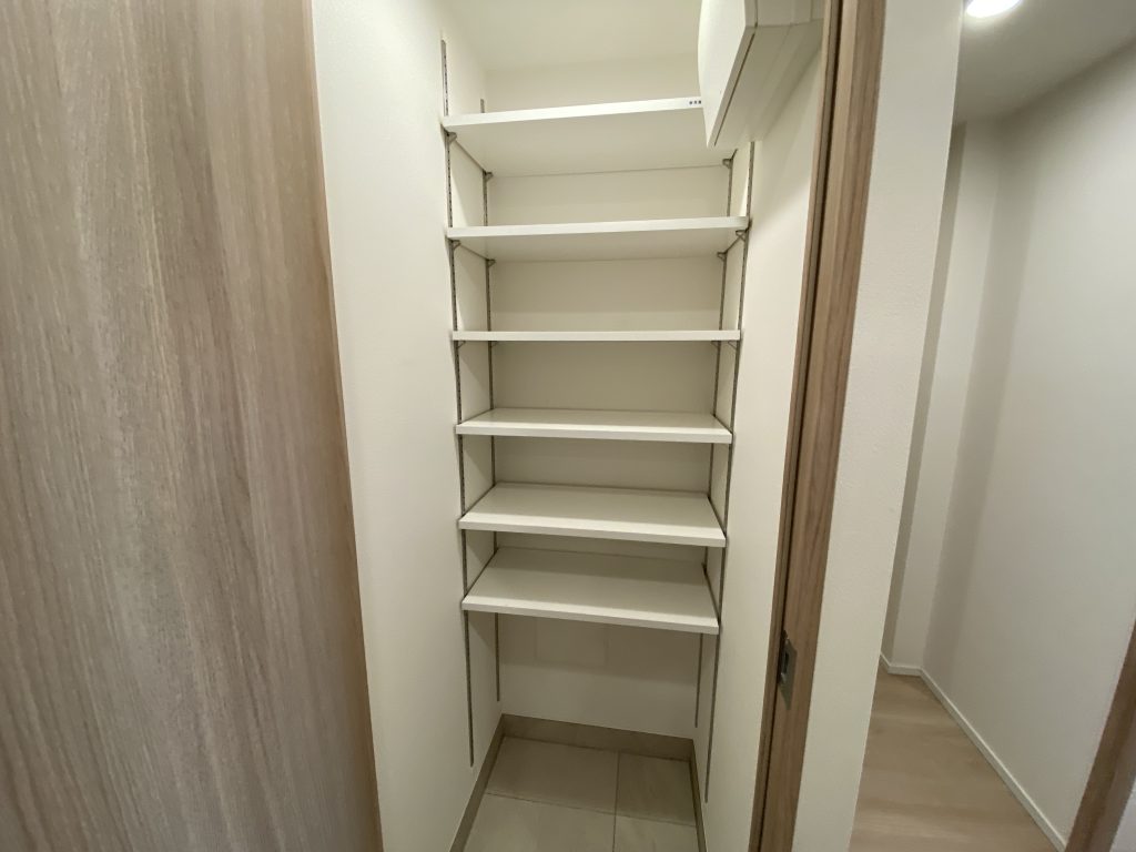 各居室にウォークイン収納が完備しているほか、廊下や洗面所など随所に収納が設けられておりますので、すっきりとしたインテリアで暮らしていただけます。