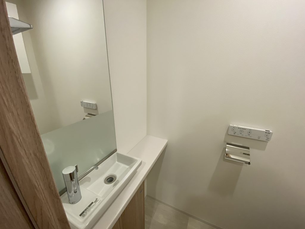 トイレ内に独立した手洗いカウンターを設置。使用後すぐに手を洗うことができるため、衛生面に優れた設計です。わざわざ洗面室へ移動する必要がなく、来客時にも生活空間を通さずに完結できる点は大きなメリット。プライバシーにも配慮された動線となっています。